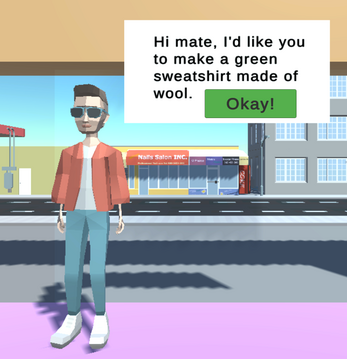 Tailor 90s themed clothes for customers! Select the desired colours, materials and snipping stencils to appease the customers.